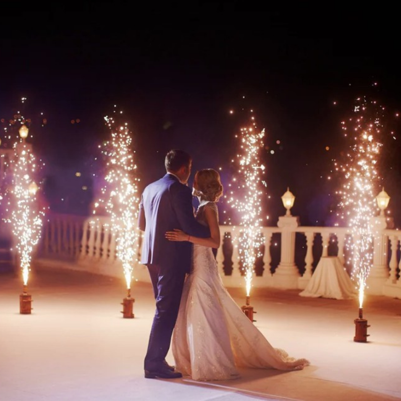 Create unforgettable moments with our cold spark firework rentals, the ultimate way to bring excitement and energy to your celebration — without the danger of traditional pyrotechnics. Perfect for grand entrances, first dances, concert-style stage effects, and surprise reveals, cold sparks deliver the wow factor your guests will never forget.