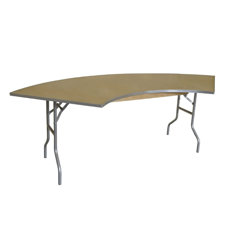 Create stunning curves and unique layouts with our serpentine table rentals. Perfect for weddings, banquets, buffets, and special events, these curved tables add movement and creativity to your floor plan — ideal for head tables, dessert displays, or dynamic serving stations.