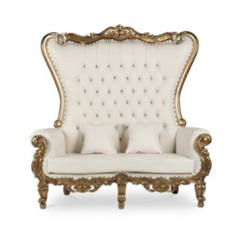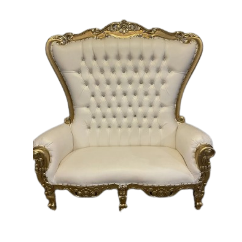 Designed for both comfort and style, the throne love seat features intricate detailing, soft cushioning, and a grand look that instantly elevates any event space.
