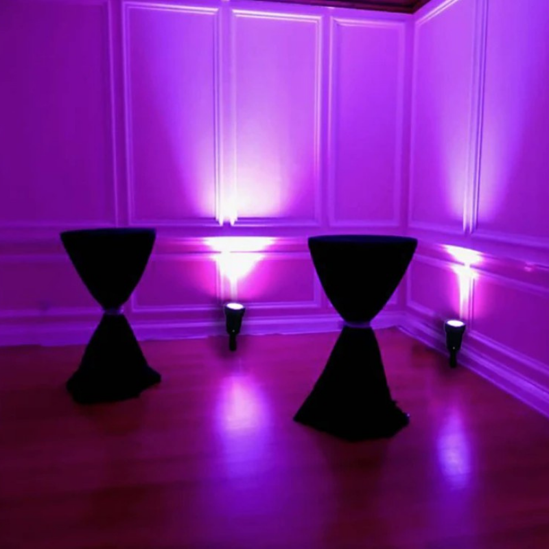 Set the mood and elevate your event atmosphere with our uplight rentals. Perfect for weddings, receptions, corporate events, and private parties, uplights instantly enhance any venue with rich color, depth, and ambiance.